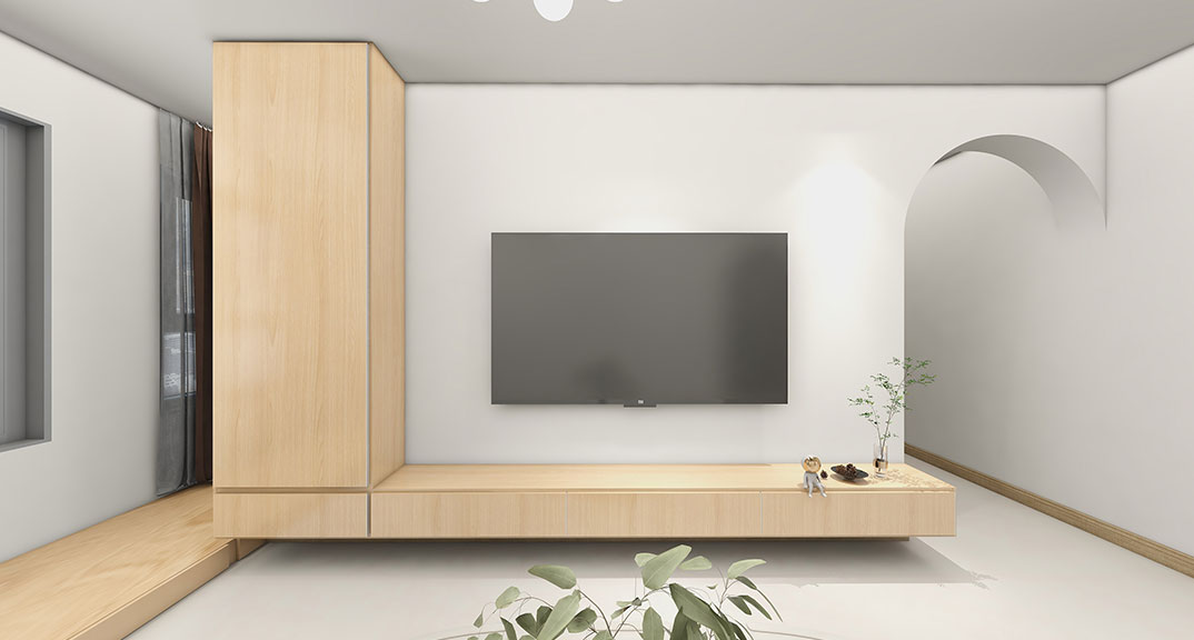 中歐國(guó)際城115㎡三室兩廳客廳電視原木極簡(jiǎn)風(fēng)格裝修案例效果圖