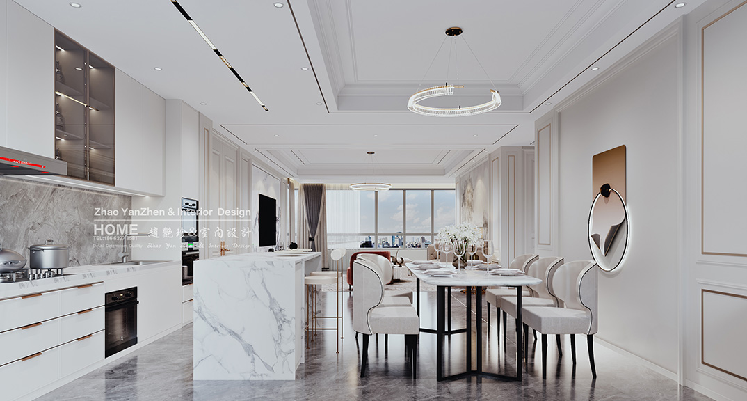 璞麗豪庭287㎡疊拼上疊餐廳美式輕奢風格裝修案例效果圖