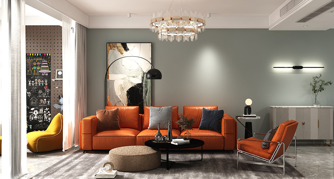 盛世華府126㎡三室兩廳客廳沙發(fā)現(xiàn)代風格裝修案例效果圖