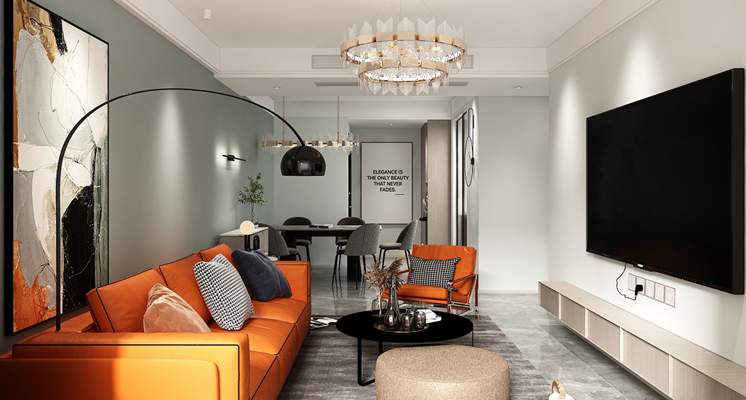 盛世華府126㎡三室兩廳客廳現(xiàn)代風格裝修案例效果圖