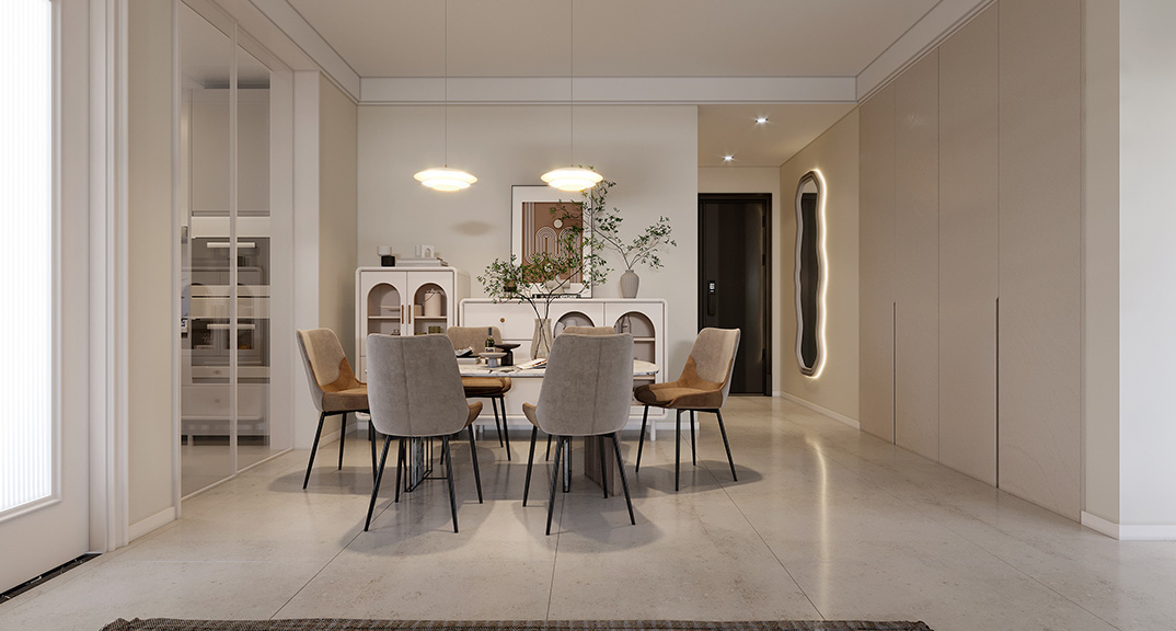 湖島世家128㎡三室兩廳餐廳現(xiàn)代簡(jiǎn)約風(fēng)格裝修案例效果圖
