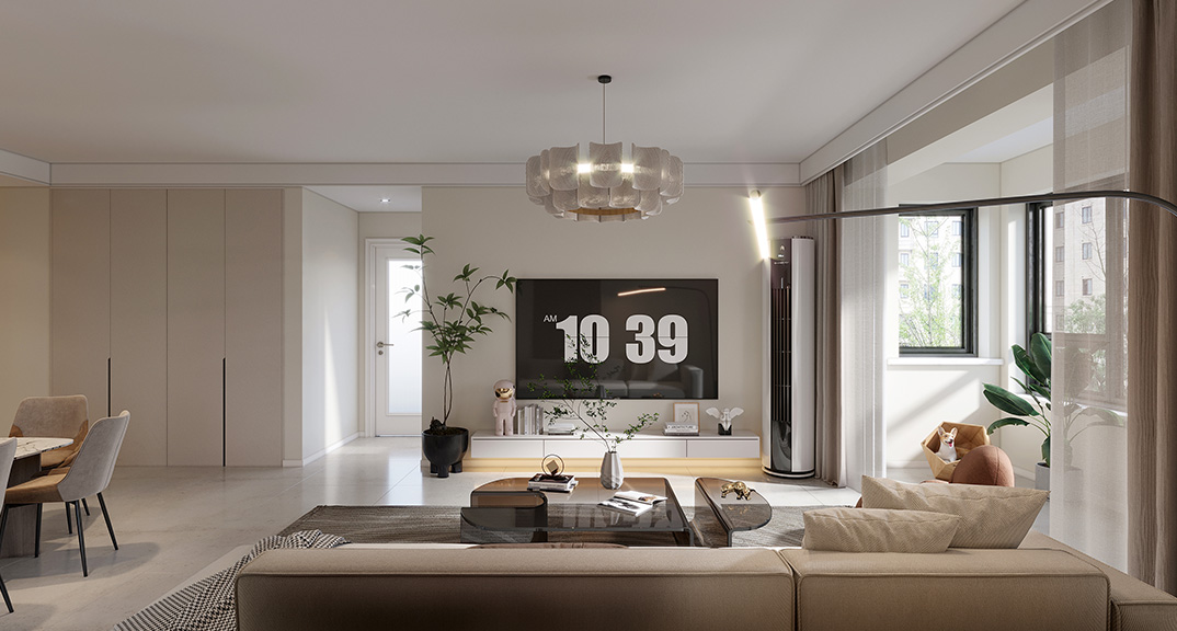 湖島世家128㎡三室兩廳客廳現(xiàn)代簡(jiǎn)約風(fēng)格裝修案例效果圖