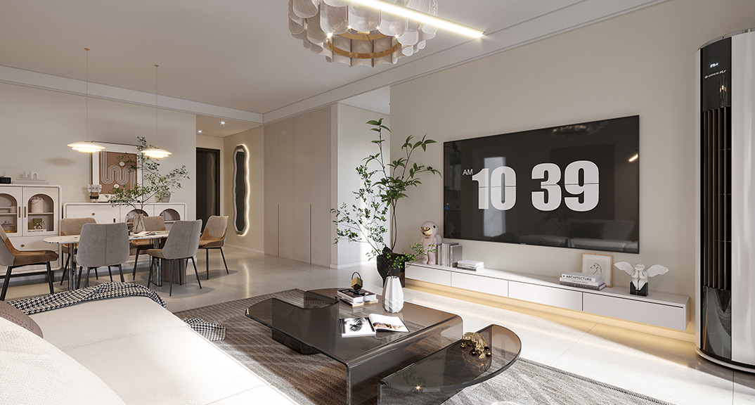湖島世家128㎡三室兩廳客廳電視餐廳現(xiàn)代簡(jiǎn)約風(fēng)格裝修案例效果圖