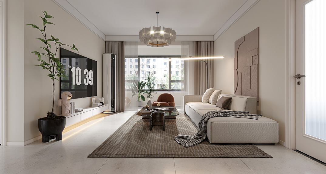 湖島世家128㎡三室兩廳客廳電視現(xiàn)代簡(jiǎn)約風(fēng)格裝修案例效果圖