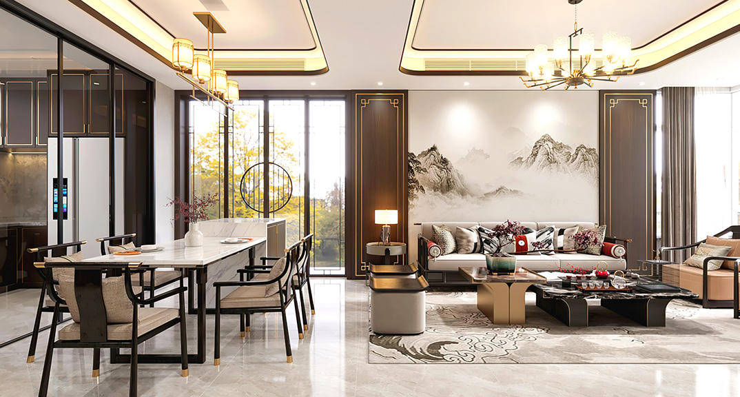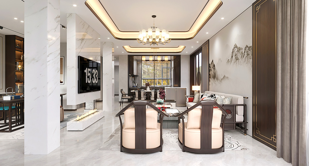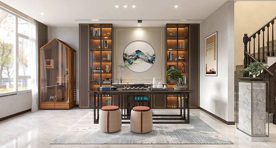 仟佰墅150㎡別墅上疊新中式風(fēng)格裝修案例效果圖