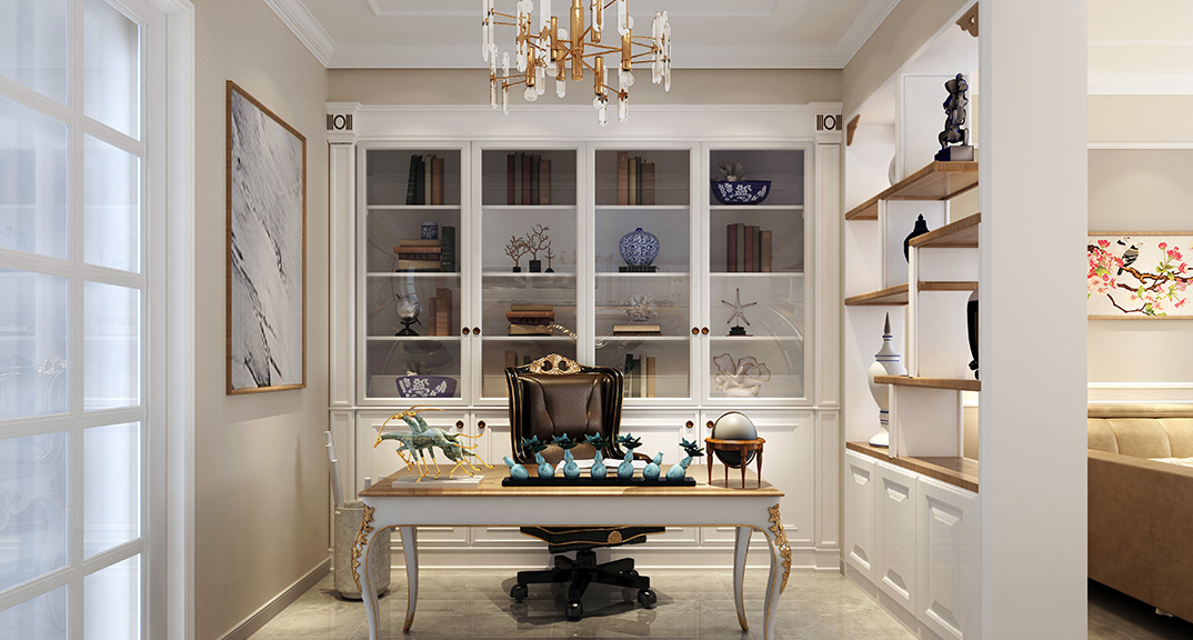 壹號(hào)學(xué)府135㎡三室兩廳書房美式風(fēng)格裝修案例效果圖