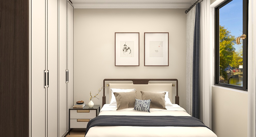 保利時代88㎡兩室兩廳臥室新中式風格戶型研發(fā)案例