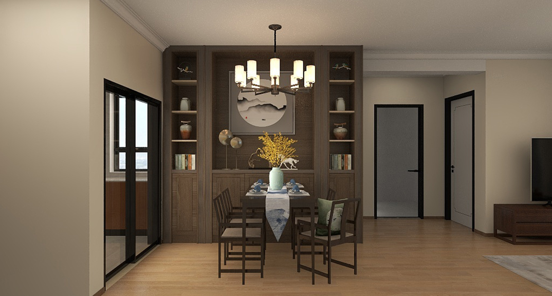 保利時代88㎡兩室兩廳餐廳新中式風格戶型研發(fā)案例