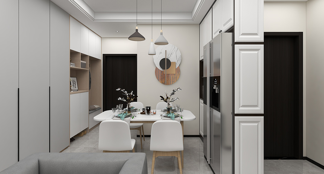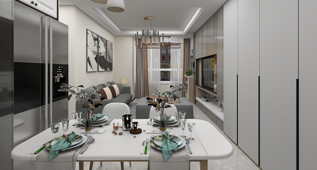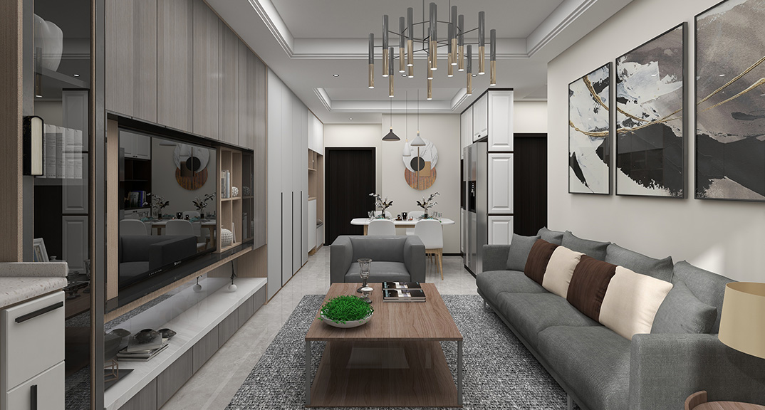 保利時(shí)代78㎡兩室兩廳客餐廳現(xiàn)代簡約風(fēng)格戶型研發(fā)效果圖