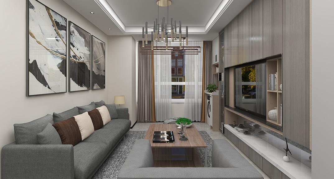 保利時(shí)代78㎡兩室兩廳客廳現(xiàn)代簡約風(fēng)格戶型研發(fā)效果圖