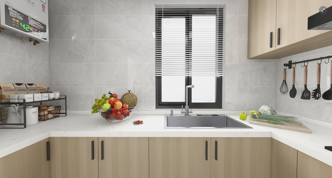 保利時(shí)代98㎡三室兩廳廚房原木風(fēng)戶(hù)型研發(fā)效果圖