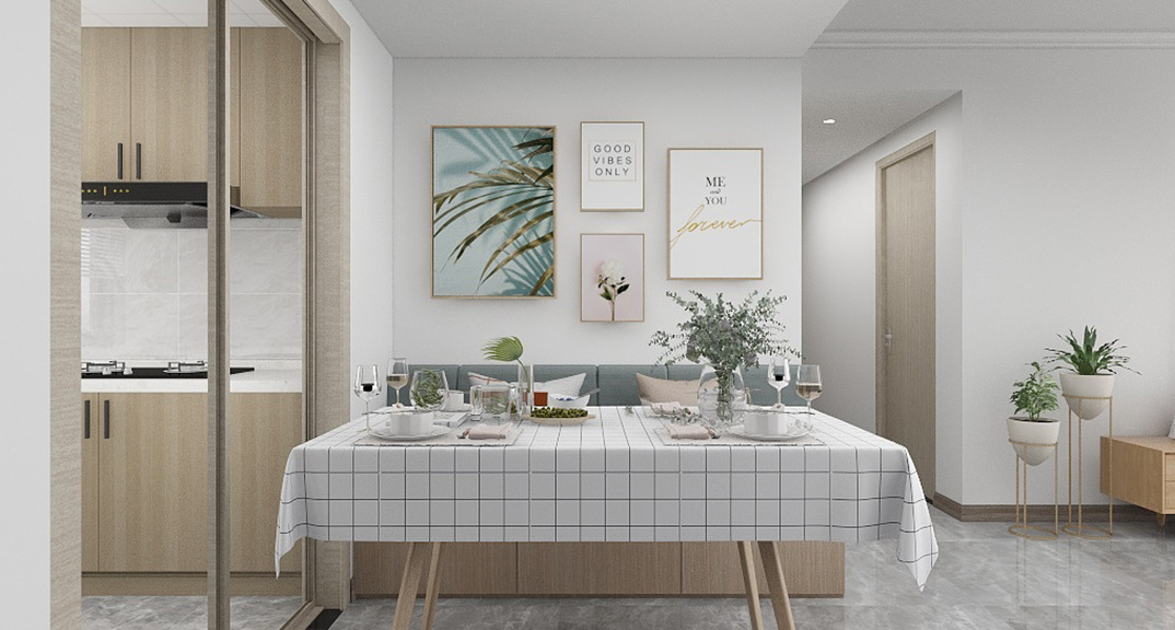 保利時(shí)代98㎡三室兩廳餐廳原木風(fēng)戶(hù)型研發(fā)效果圖