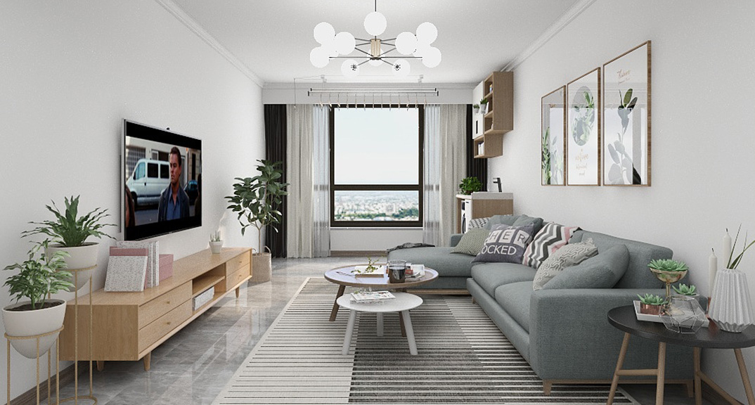 保利時(shí)代98㎡三室兩廳客廳原木風(fēng)戶(hù)型研發(fā)效果圖