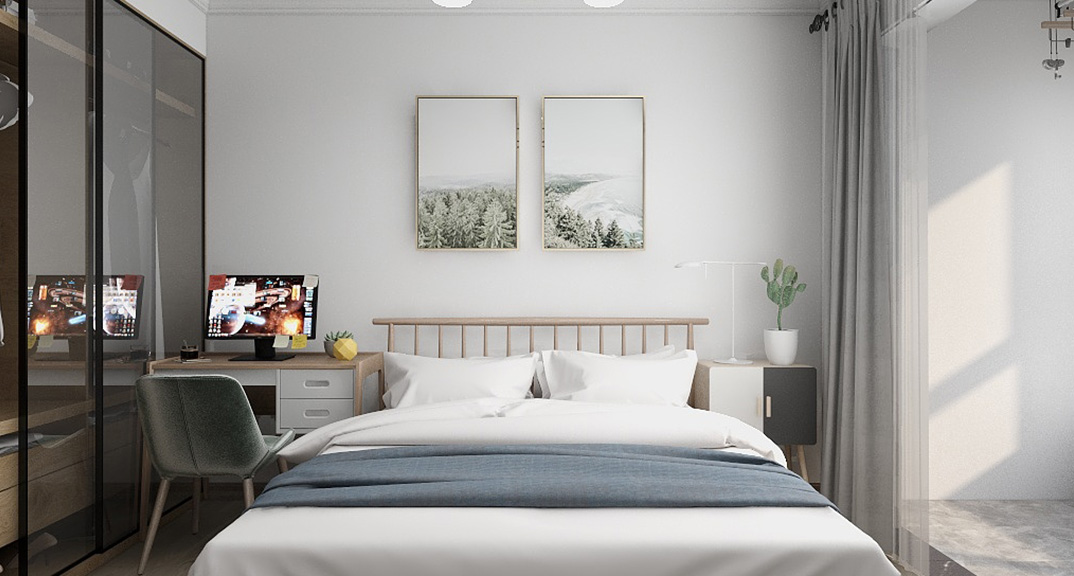 保利時(shí)代98㎡三室兩廳臥室原木風(fēng)戶(hù)型研發(fā)效果圖