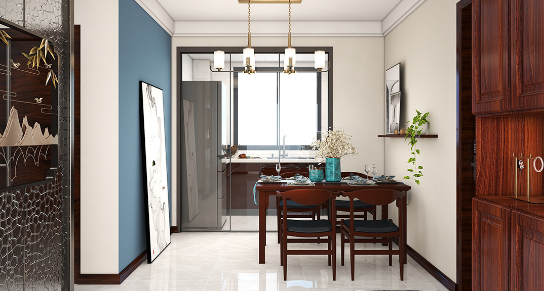 保利時代98㎡三室兩廳餐廳中式風格戶型研發(fā)效果圖