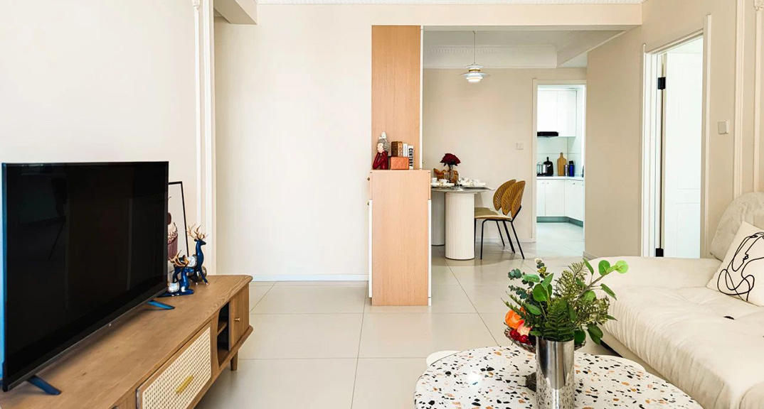 大都匯75㎡兩室兩廳客廳電視奶油風(fēng)裝修案例效果圖