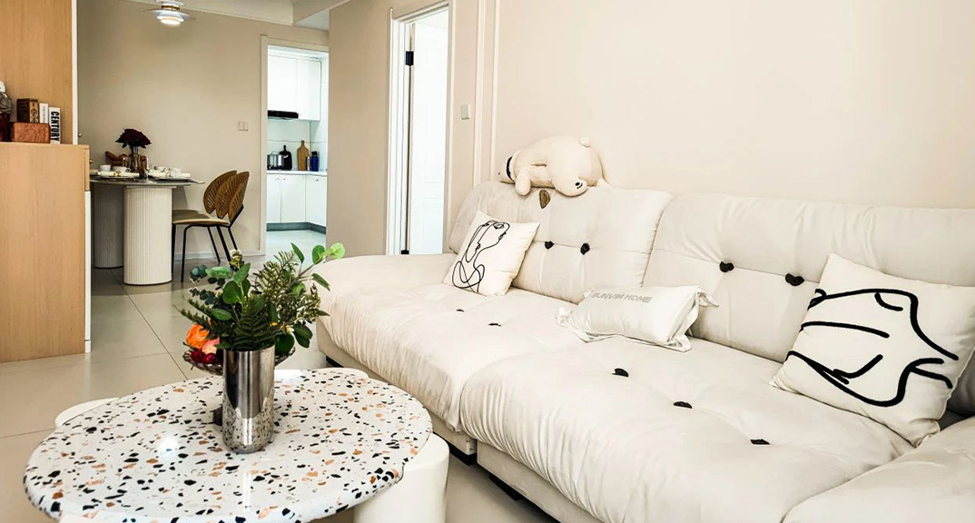 大都匯75㎡兩室兩廳客廳沙發(fā)奶油風(fēng)裝修案例效果圖