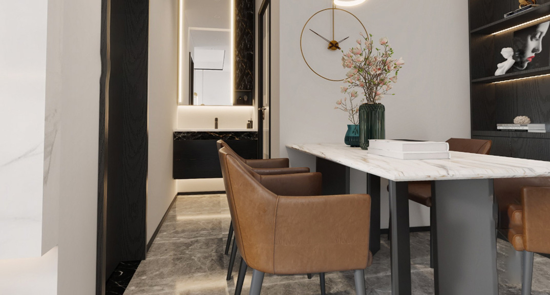 萊頓小鎮(zhèn)94㎡三室兩廳餐廳現(xiàn)代簡約風(fēng)格裝修案例效果圖