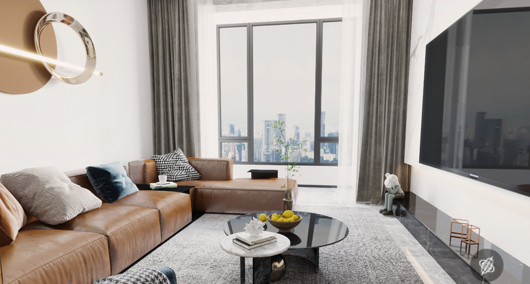 萊頓小鎮(zhèn)94㎡三室兩廳客廳現(xiàn)代簡約風(fēng)格裝修案例效果圖
