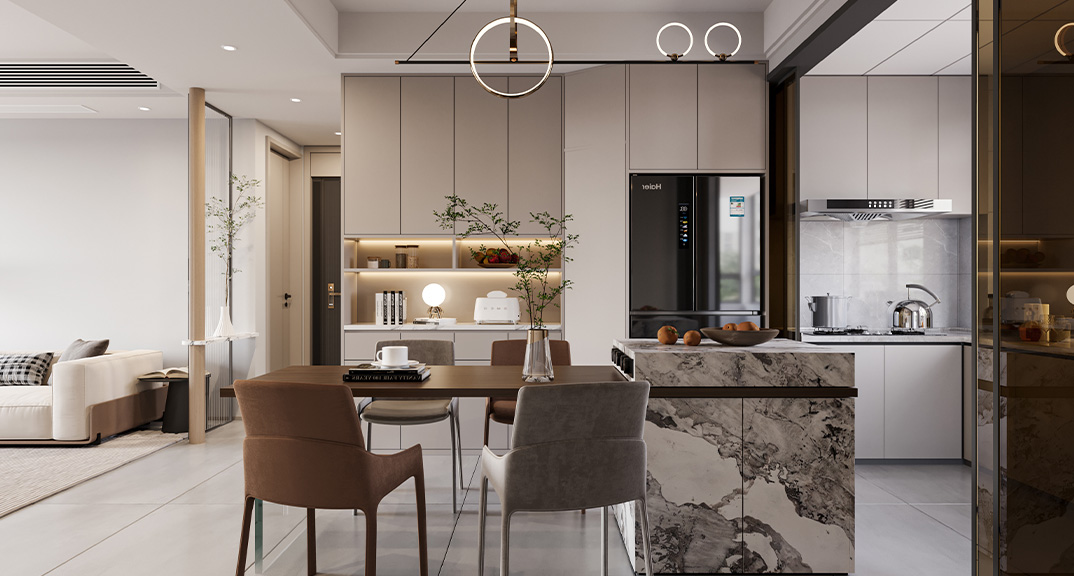 大連花園128㎡三室兩廳餐廳廚房現(xiàn)代簡(jiǎn)約風(fēng)格裝修案例效果圖