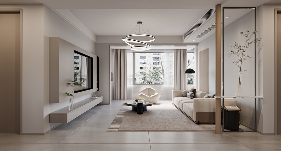 大連花園128㎡三室兩廳客廳現(xiàn)代簡(jiǎn)約風(fēng)格裝修案例效果圖