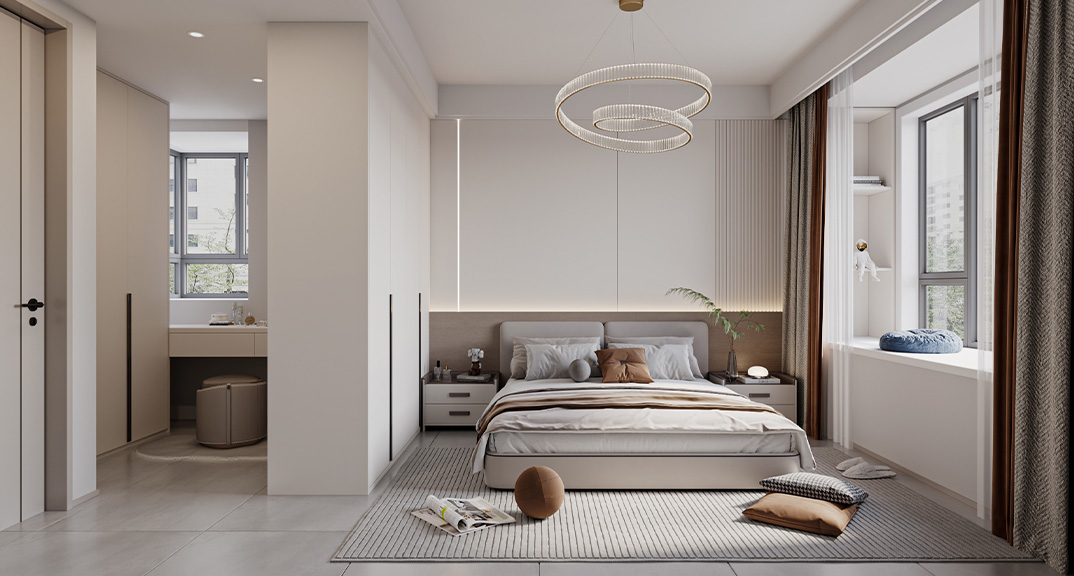 大連花園128㎡三室兩廳臥室現(xiàn)代簡(jiǎn)約風(fēng)格裝修案例效果圖