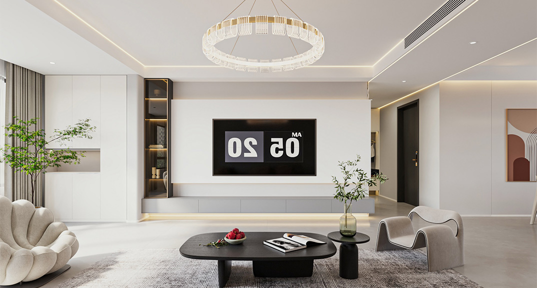 玖熙城160㎡四室兩廳客廳電視現(xiàn)代簡(jiǎn)約風(fēng)格裝修案例效果圖