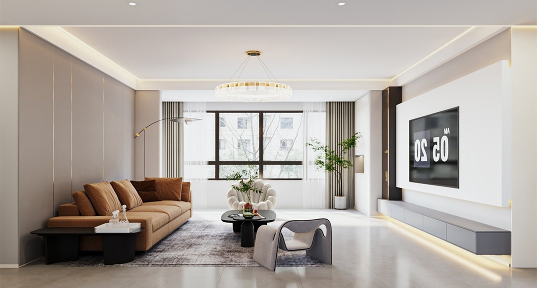 玖熙城160㎡四室兩廳客廳現(xiàn)代簡(jiǎn)約風(fēng)格裝修案例效果圖