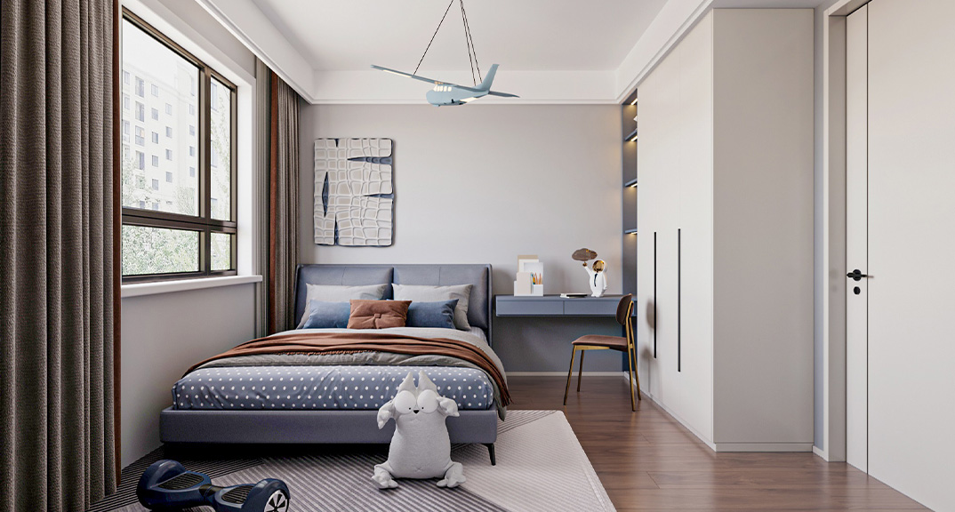 玖熙城160㎡四室兩廳臥室現(xiàn)代簡(jiǎn)約風(fēng)格裝修案例效果圖