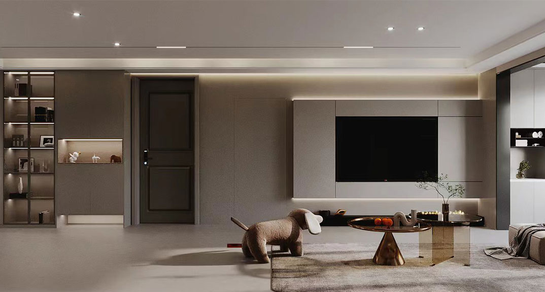 萊頓海語墅140㎡四室兩廳客廳電視現(xiàn)代簡約風(fēng)格裝修案例效果圖