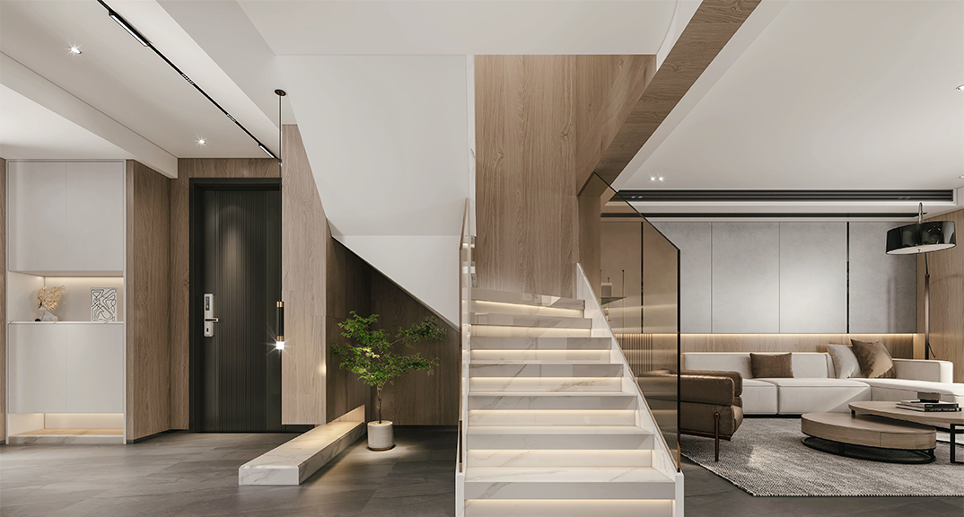 業(yè)主想要自己家富有質(zhì)感與創(chuàng)新,特殊材料,線性燈的運(yùn)用較多,整體空間以木色與深灰色為基調(diào),搭配具有藝術(shù)氣息的工藝品,天然肌理的家具,來營造出寧靜優(yōu)雅的居住環(huán)境。