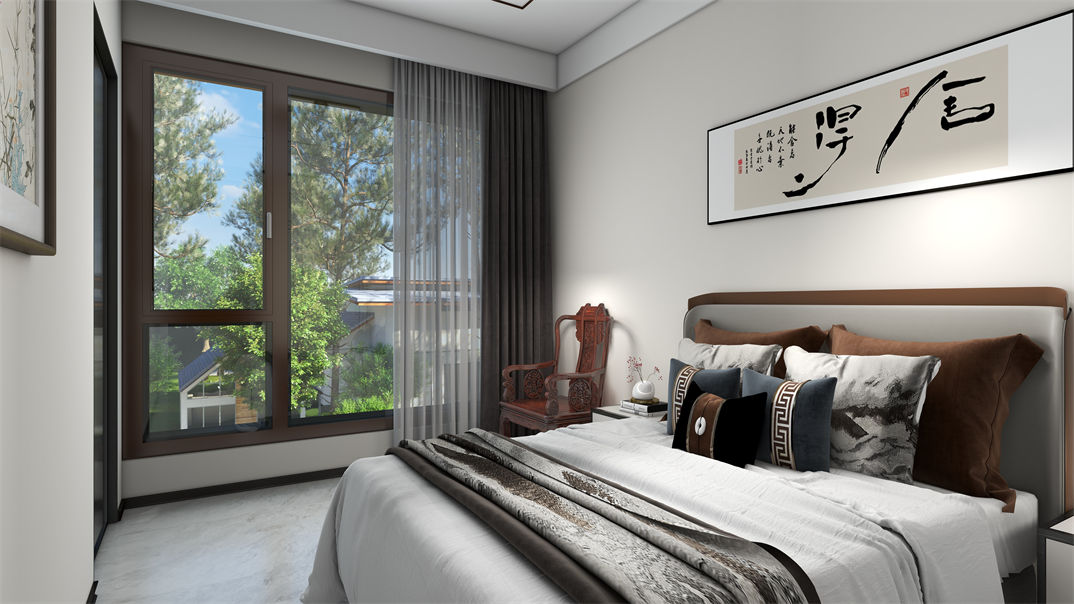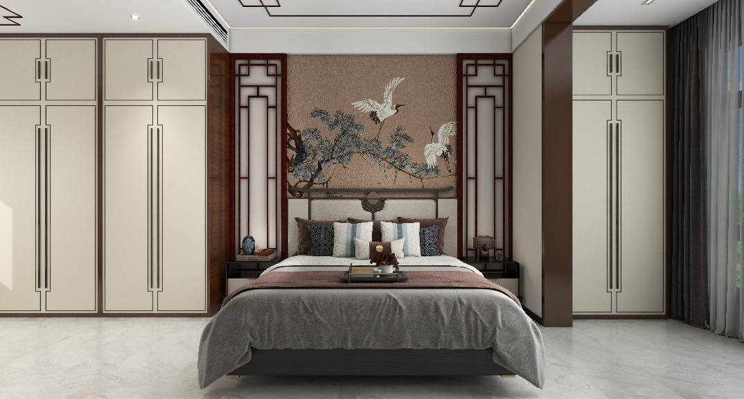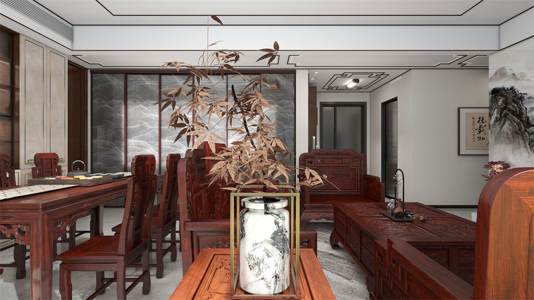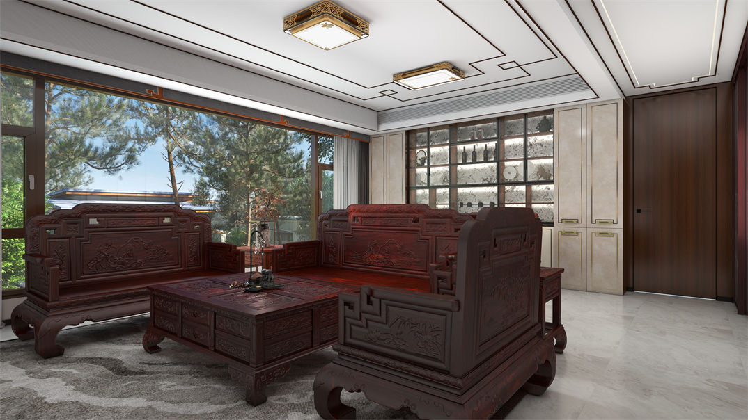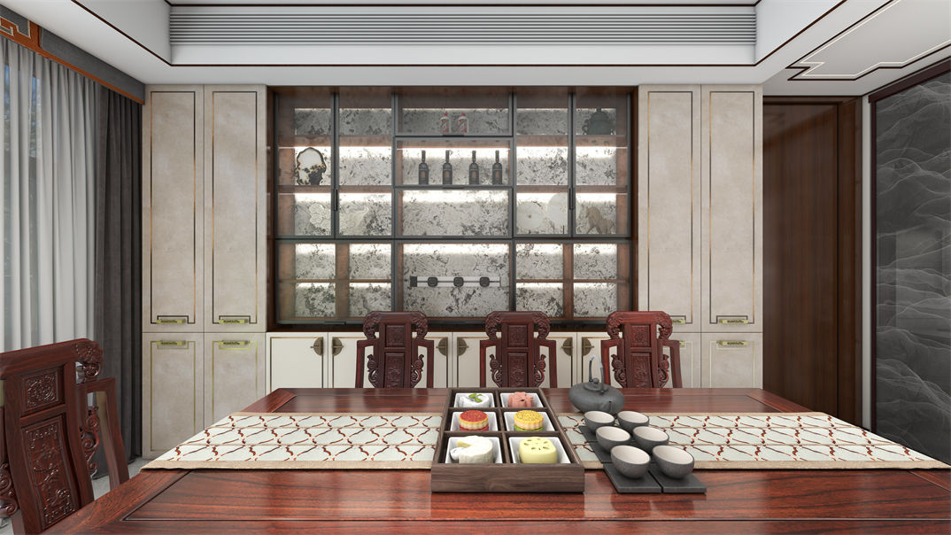 青島裝修效果圖-青特云鏡170㎡-新中式效果圖案例-東方家園裝飾
