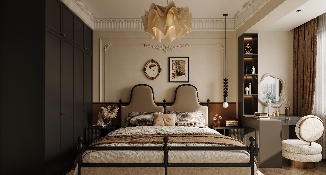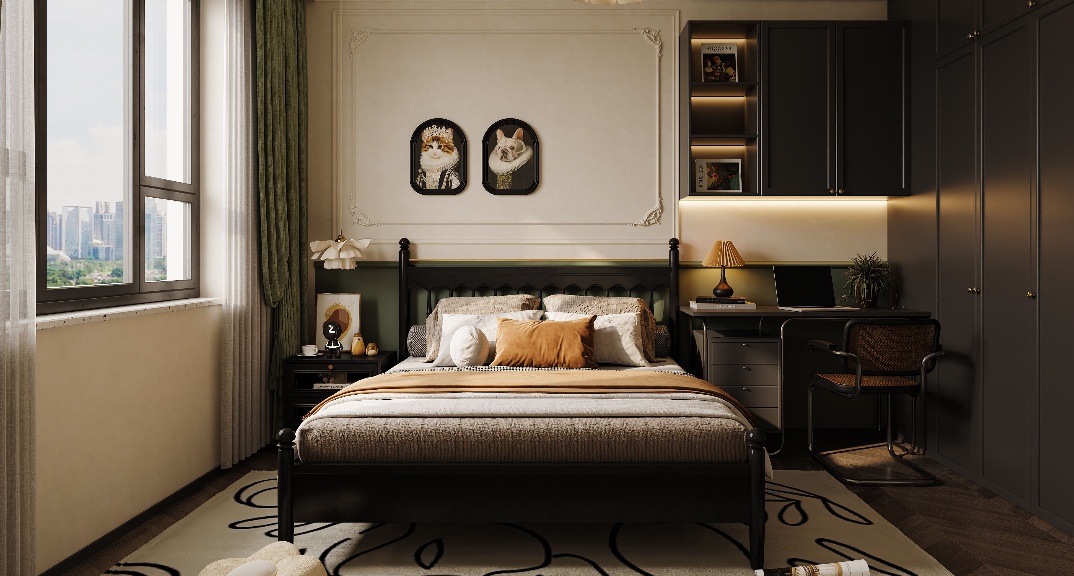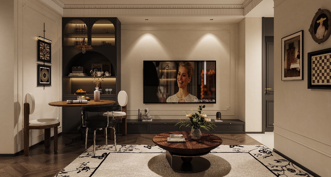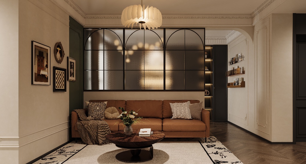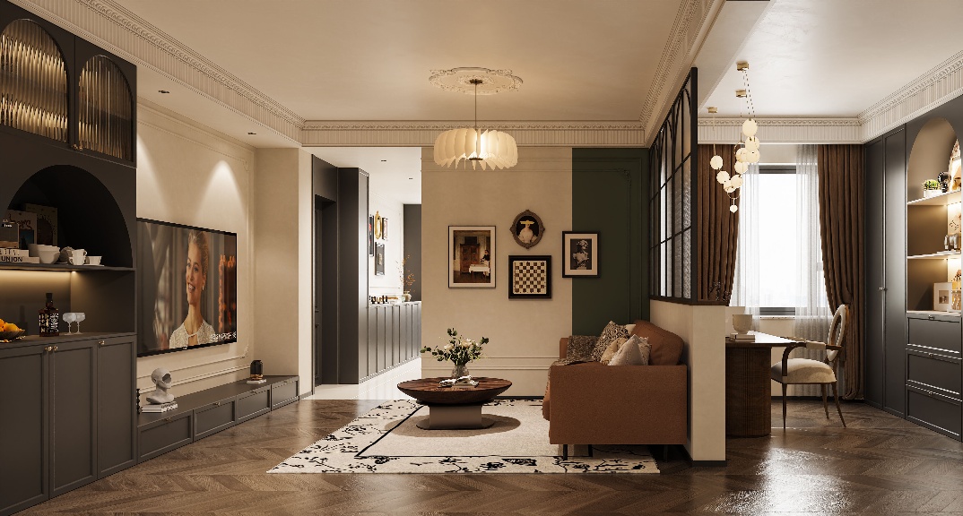 客戶需要書房,考慮到客廳的尺寸,決定在沙發(fā)上后側(cè)作為獨立的讀書區(qū),既能中和沙發(fā)和電視之間的距離,也可以增加空間的趣味性,用玻璃間隔做到了隱私性和透光性同時兼顧。