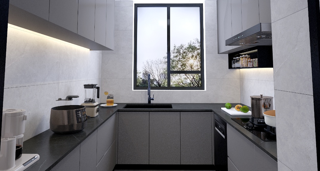 一樓空間做了最大程度的開放設(shè)計(jì),讓進(jìn)家的第一視覺空間感覺非常通透和敞亮。選擇了連紋深灰色的地磚、灰色定制柜配合杏子灰的乳膠漆顏色,使整個空間顯得非常簡潔時尚,樓梯采用了天然大理石和無邊框鋼化玻璃扶手。二樓空間做了很大調(diào)整,原來的空間樓梯間空間太緊促,衛(wèi)生間設(shè)計(jì)不合理,主臥儲物空間不足,客戶要求有兩個衛(wèi)生間,主衛(wèi)要有浴缸,兩個衛(wèi)生間都要有獨(dú)立的淋雨區(qū),公衛(wèi)還要做干濕分離,把原有的空間做了相應(yīng)的調(diào)整,完全解決了以上所有的問題。