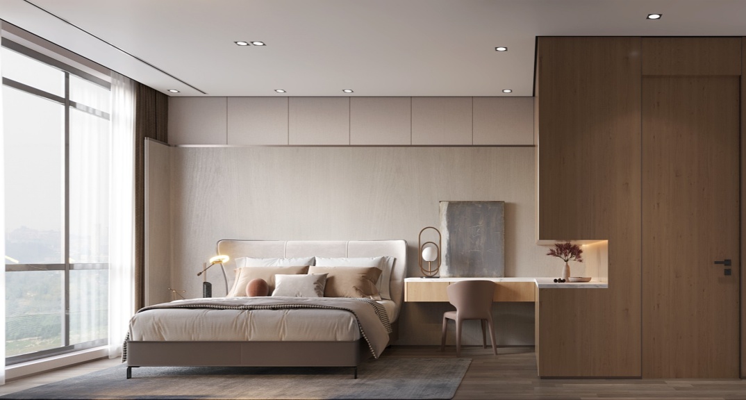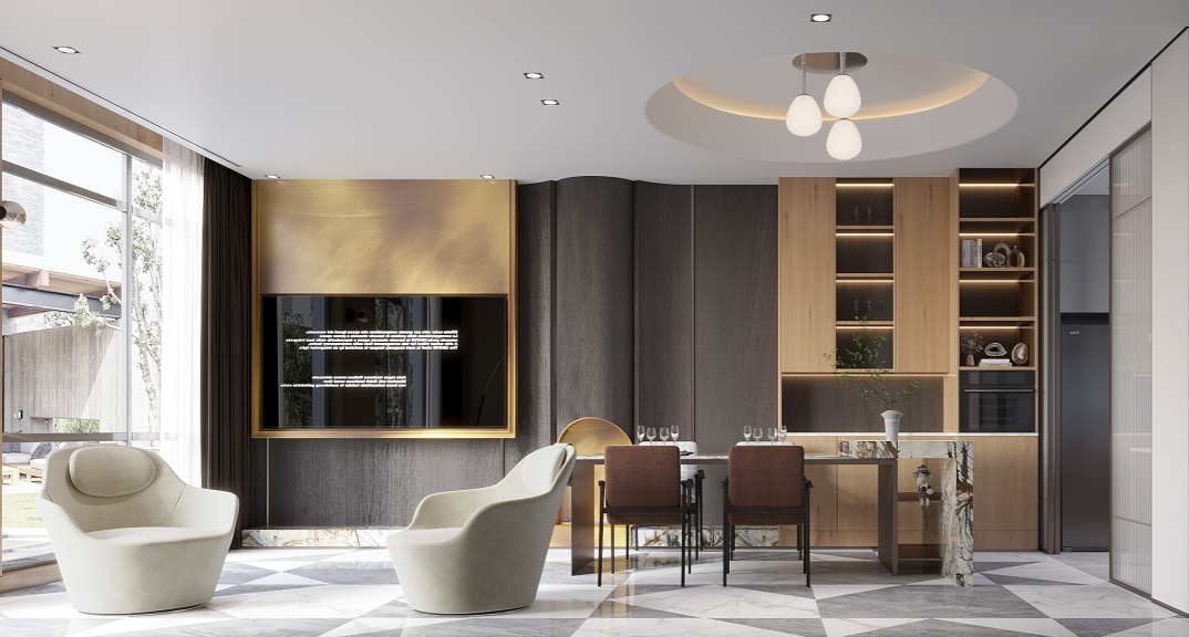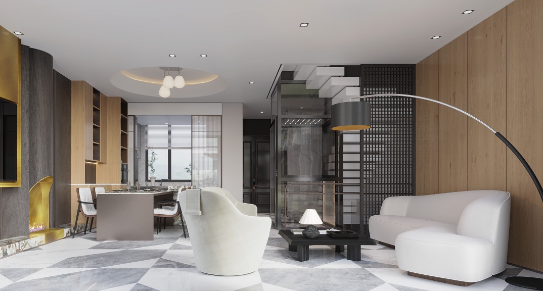整體設(shè)計(jì)以深灰色、黑色為主色調(diào),搭配木飾面、原木地板和金屬裝飾,營(yíng)造沉穩(wěn)內(nèi)斂的現(xiàn)代風(fēng)格。同時(shí),注重空間的功能性和實(shí)用性,滿足業(yè)主及父母日常生活和休閑娛樂(lè)需求,打造舒適便捷、低調(diào)奢華的理想居所。