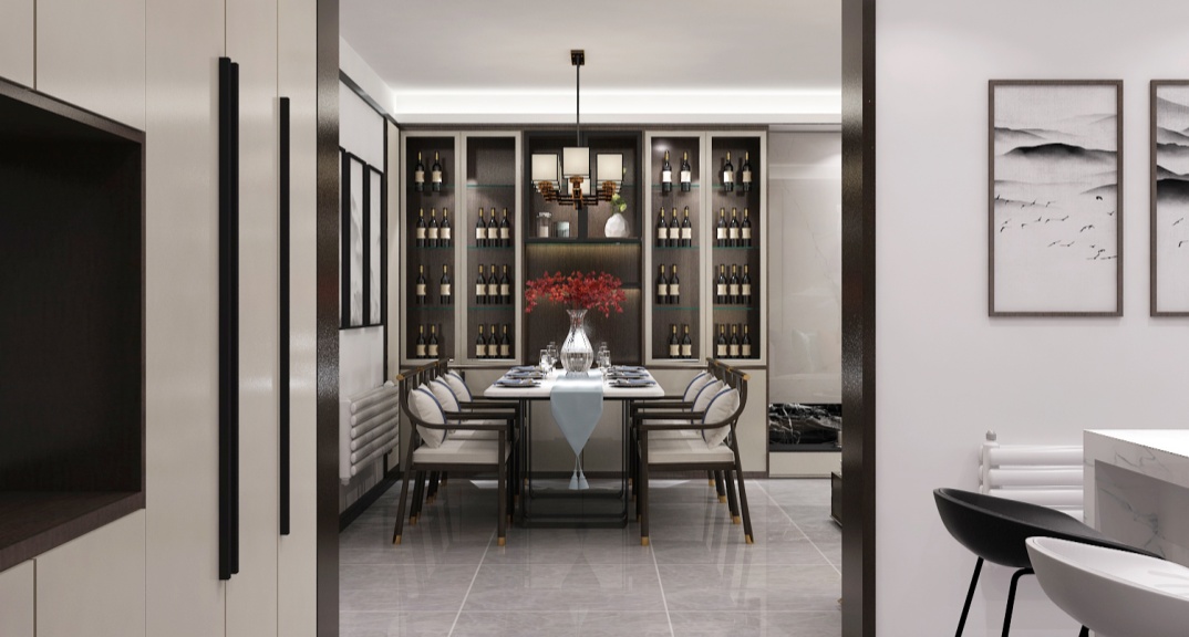 餐廳與客廳在一個(gè)空間統(tǒng)一處理,滿足會(huì)客就餐功能;進(jìn)門做開放式廚房,增加廚房操作空間,增加早餐導(dǎo)臺(tái);主臥開間比較大,床對(duì)面做定制衣柜,主衛(wèi)改成衣帽間,增加收納;兒童房及客房用定制衣柜,榻榻米增加收納空間,滿足學(xué)習(xí)及休息空間;陽臺(tái)設(shè)置洗衣機(jī),增加學(xué)習(xí)區(qū)。